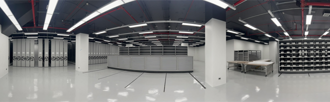 To detect fires as early as possible and achieve precise control, the collections vault project implemented the very early smoke detection apparatus (VESDA) system, which has a wider sensitivity range (0.001-20.0% obs/m), in all collection warehouses and inside high/low-voltage switchgear panels in electrical rooms. The project also implemented the aspiration smoke detector (ASD) system, which would actively and continuously draw air samples 24 hours a day to monitor suspended particles. When smoke is detected, the system will immediately emit alarm signals, buying valuable time during the initial stages of a fire. Furthermore, the VESDA system is combined with laser detection technology and advanced air particle analysis to precisely detect minute amounts of smoke and potential fire signs. It features auto-calibration, intelligent control, and remote monitoring to ensure stable operation and immediate troubleshooting. Through flexible settings for multi-level, staged alarms, the system can detect anomalies and trigger warnings even when just a tiny amount of smoke is present—before a fire breaks out—helping users control the situation early and avoid damage.