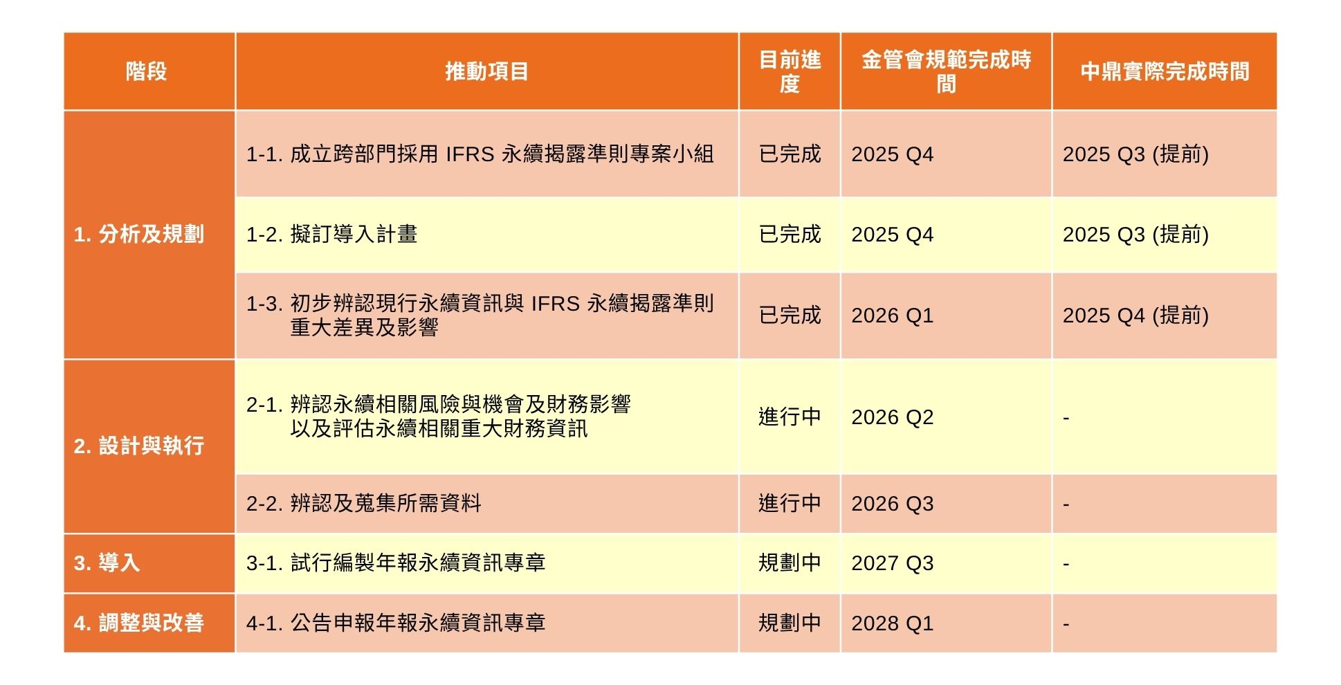 中鼎IFRS導入計畫時程