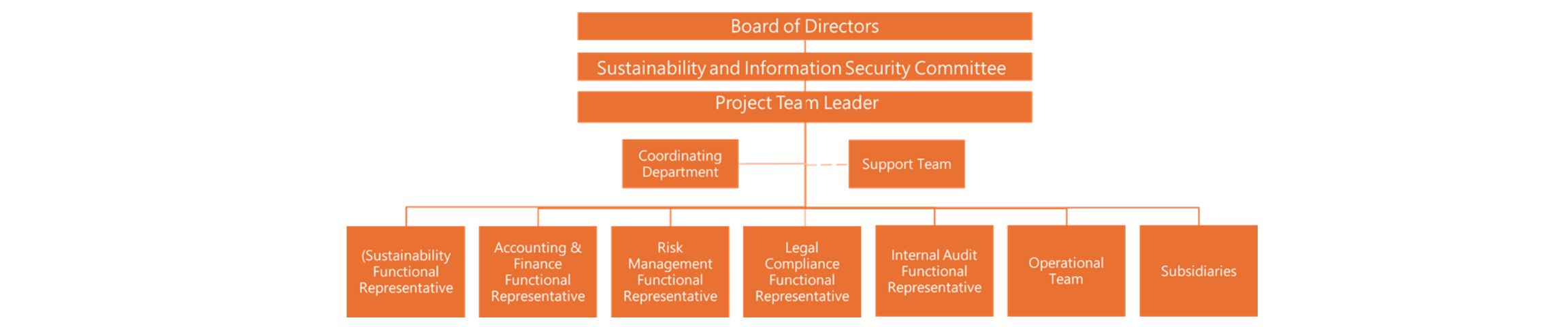 To ensure the smooth implementation of IFRS, CTCI established the IFRS Sustainability Disclosure Task Force in August 2025, with the Chief Sustainability Officer (CSO) serving as the leader. The task force fulfills the following roles: .Top-down Elevation of Governance Stature: Overseen by the Board of Directors and the "Sustainability and Information Security Committee," the task force is reported on by the CSO, demonstrating the importance management places on sustainability management. .Horizontal communication to strengthen issue promotion: Since sustainability issues are part of daily operations across various units—such as sustainability, finance and accounting, risk management, legal compliance, auditing, operations teams, and subsidiaries—the task force acts as an integrator, facilitating mutual understanding and exchange among units and linking them to financial aspects.