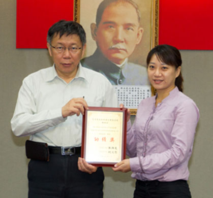 - 2015/12SESC Pei-Yu,Lin Honored with the Excellent HSE Personnel Award from Ministry of LaborFollowing the recognition of the 2014 Taipei Labor Safety Award ,SESC Assistant Manager Pei-Yu,Lin once again won the Excellent HSE Personnel Award from Ministry of Labor under the keen competition. The award ceremony was held on 1 December 2015 at Taipei City Hall. Taipei City Mayor Wen-Che,Ko presented the honor roll certificates to the award winners to praise their performances and contribution to HSE managment.