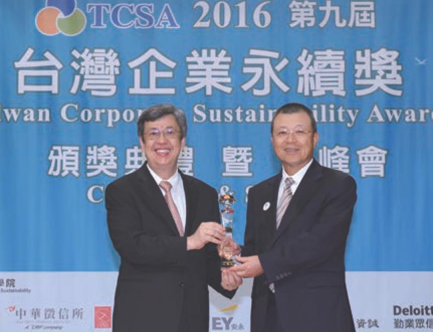 - 2016/11CTCI Recognized with Various Achievements in 2016 Taiwan Corporate Sustainability Awards (TCSA)With achievements in enhancing the competitiveness of the engineering industry and fulfillment to our green commitment, CTCI has delivered excellence in corporate sustainability and is thus recognized with various achievements in 2016 Taiwan Corporate Sustainability Awards (TCSA). Group Chairman John T. Yu has been honored as the “Outstanding Corporate Sustainability Professional” and at the same time, CTCI received “Sustainable Corporate Award,” gold medal for “Corporate Sustainability Report Award,” “Transparency and Integrity Award,” and “Growth through Innovation Award”. KD Holding, subsidiary of CTCI, has also been granted with a bronze medal for “Corporate Sustainability Report Award” and “Transparency and Integrity Award.”