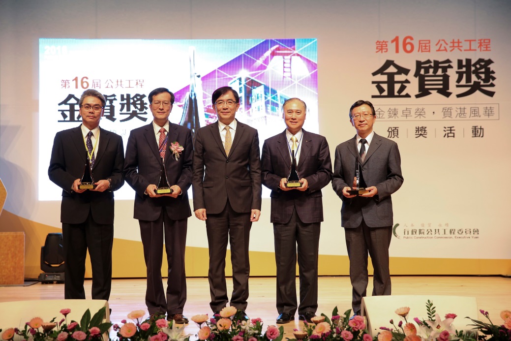 - 2016/12CTCI Recognized with Prizes for Design and Construction of the Golden Quality Award, the Highest Honor in Public Construction WorksCTCI contracted and executed "CPC Talin No.11 DHDS EPC Project", and has fully implemented energy-saving designs to successfully assist CPC with producing low sulfur content of high-quality diesel oil. With its professional engineering services and commitment to quality, CTCI won the highest honor in design and construction excellence awards under the facilities category of "The 16th Public Construction Golden Quality Award". The award ceremony was held on 21 December 2016 at the Convention Center of CPC Corporation. On behalf of the company, Group Vice Chairman Michael Yang and Vice President Shen-Peng Liao of Hydrocarbon Business Operations accepted the award from Wu Hong-Mo, Minister of Public Construction Commission.