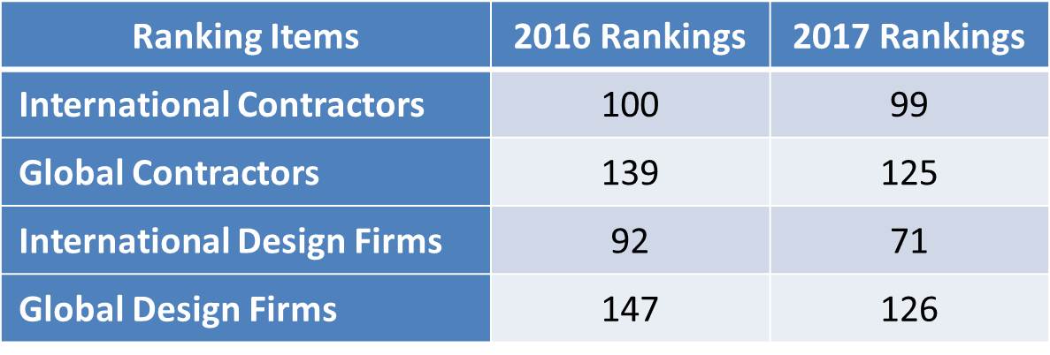 ENR, a prestigious international magazine, conducts its surveys for engineering companies annually. ENR rankings have strong credibility and are important indexes for international engineering industry. ENR rankings have two main categories which are design firms and contractors based on company’s annual sales revenues. Among the ENR rankings, companies in the "International" list are ranked on the basis of overseas revenues, whereas companies in the "Global" list are ranked according to their total revenues regardless of where the project is located. In recent years, CTCI Corporation constantly makes efforts on growth and successfully expands the international markets by enhancing the technical level, profitability, and international visibility. Therefore, CTCI Corporation continues to jump in rankings among international engineering companies.![]()