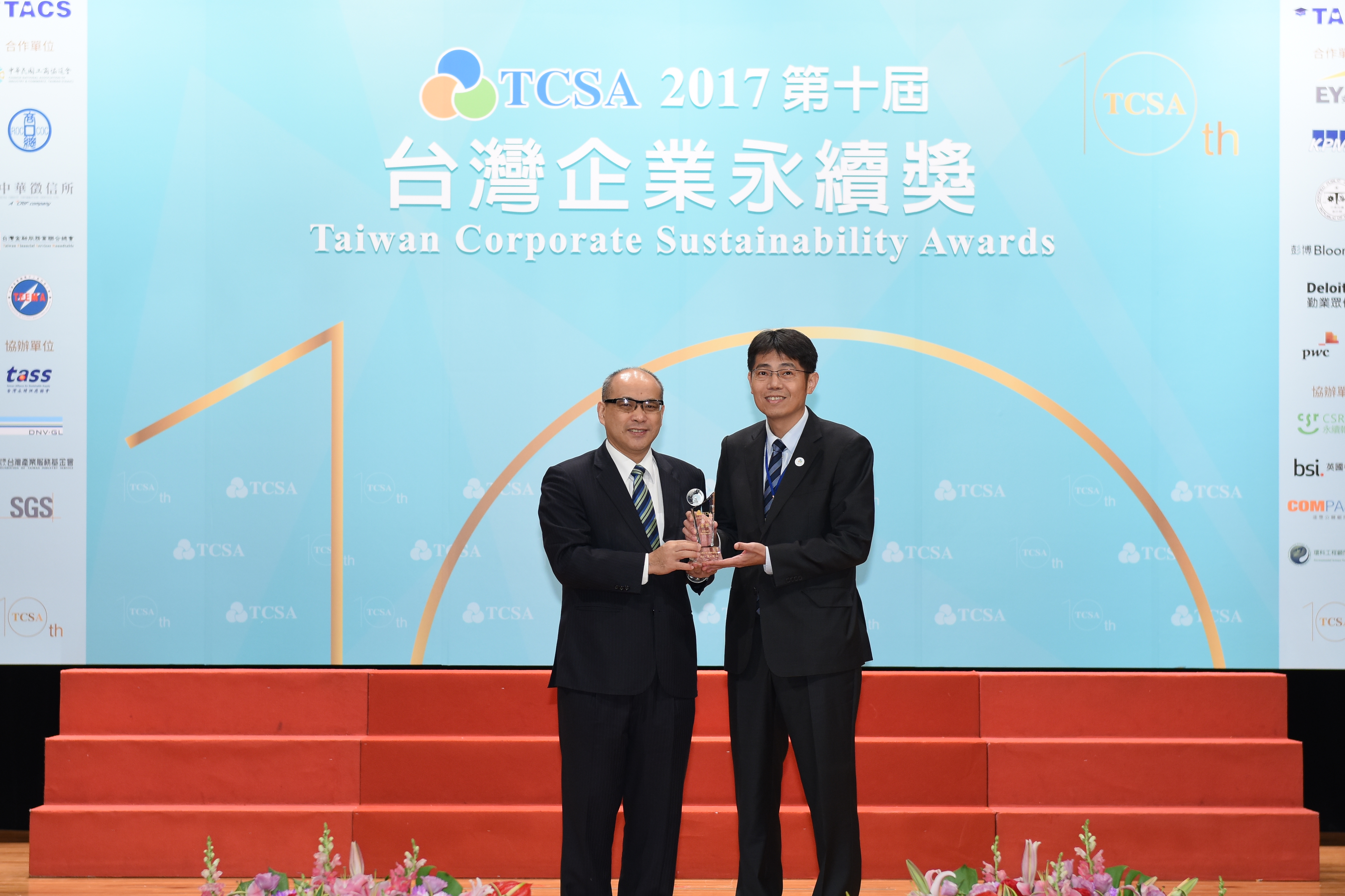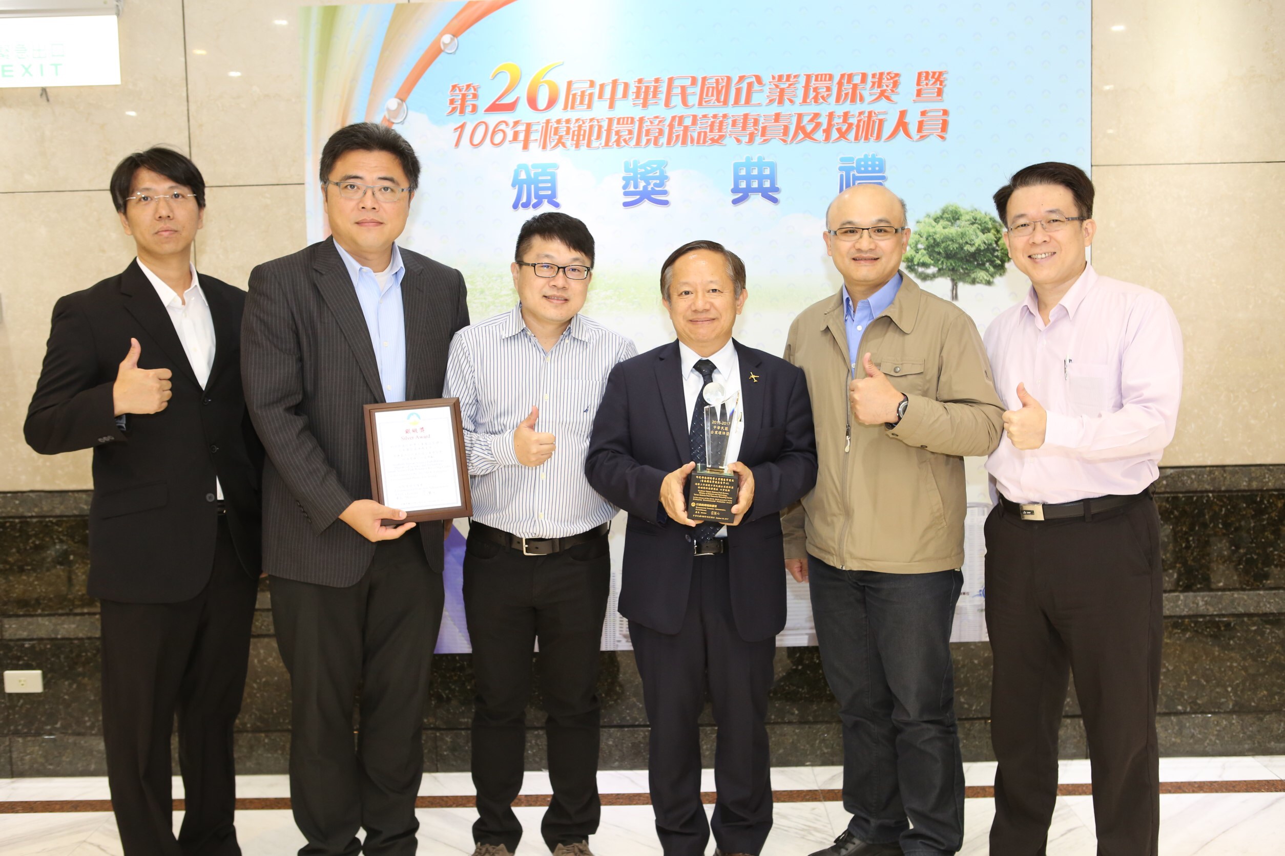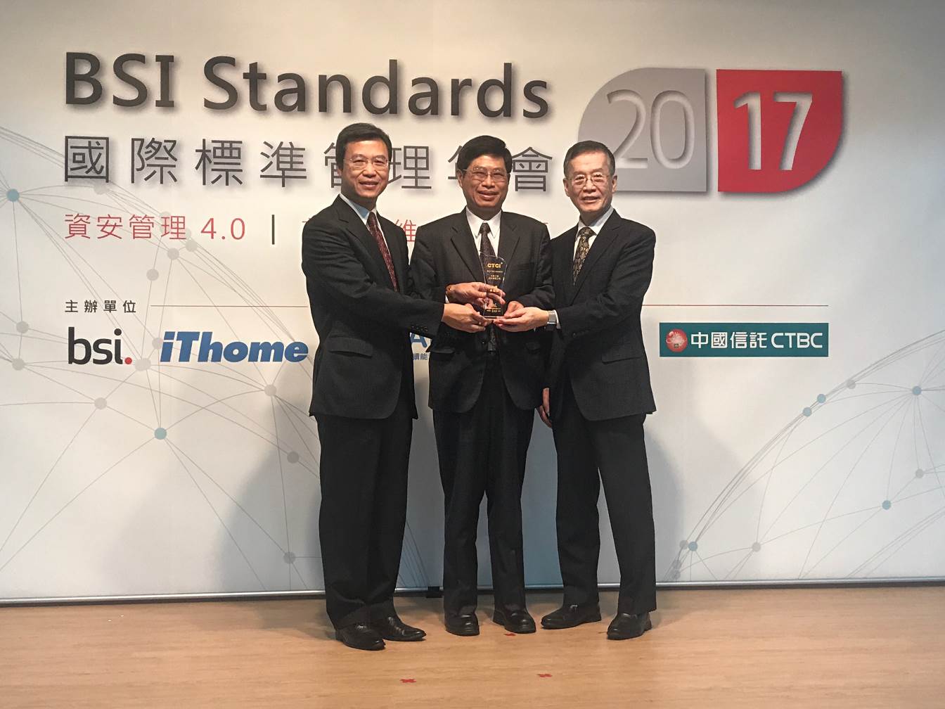 The award ceremony was held on May 23, 2017 at Taipei International Convention Center. Mr. John Lin, Group Chief Vice Chairman, Mr. Ming-Cheng Hsiao, CEO of Group Shared Services, Mr. Hwei-Nan Yih, CEO of Group Intelligent Solutions Business, and Mr. J. J. Liao, CEO of Group Resource Cycling Business, received the awards on behalf of CTCI Corp., ASI and KD, respectively.