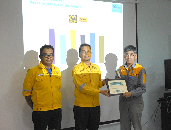 The owner SAMAC, as a joint venture between SABIC and MRC, conducts quarterly safety audit on all EPC contractors in accordance with the performance rating, where good performance is awarded in the Green Category and the best performance among KSA is awarded with the Green Flag. Until now, quarterly safety audits were conducted 8 times and CTCI has been awarded for Green Category consecutively and has so far won 3 green flags.